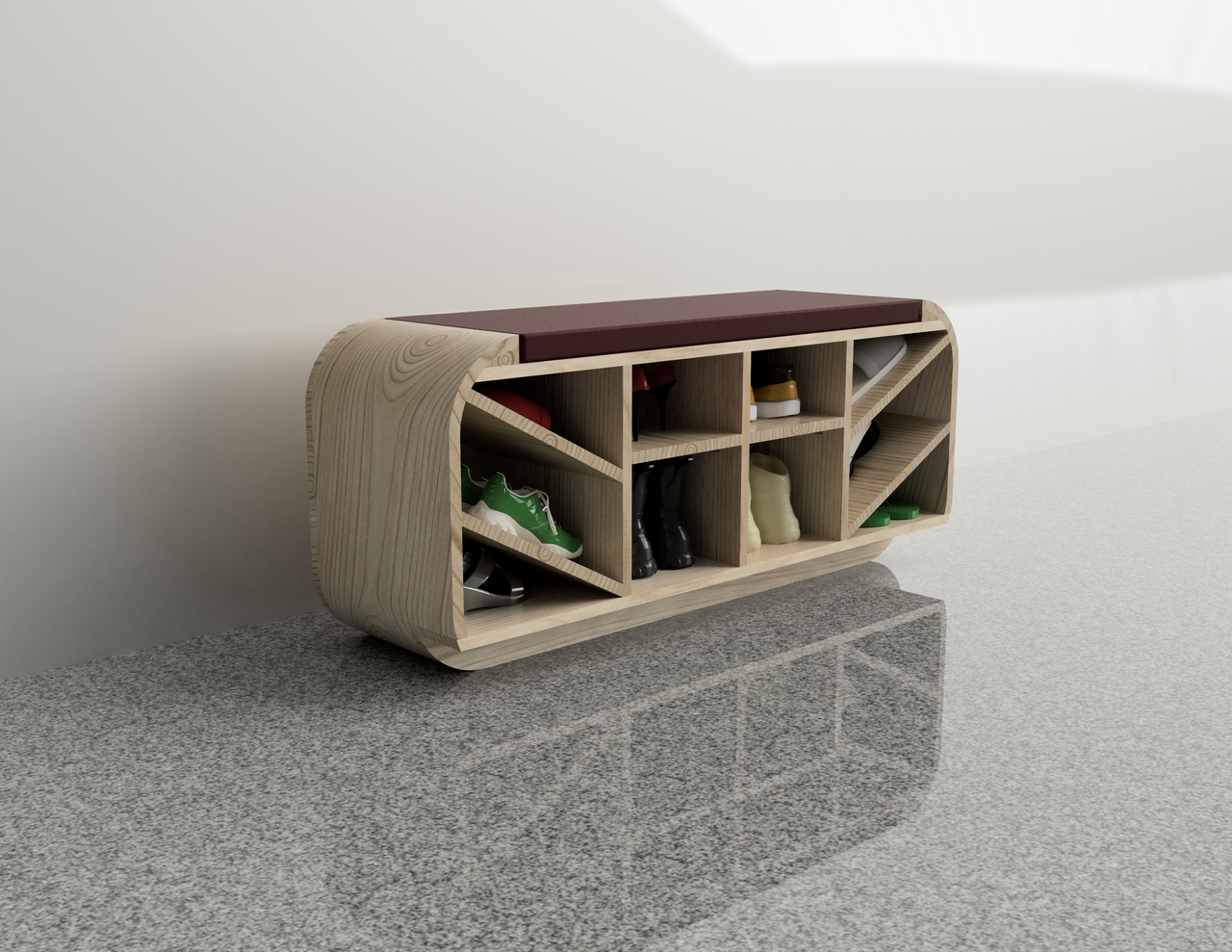 Banco zapatero Diseño de un mueble de entrada con función de zapatero con posibilidad de asiento. Bench - shoe rack by Jose on Sketchfab