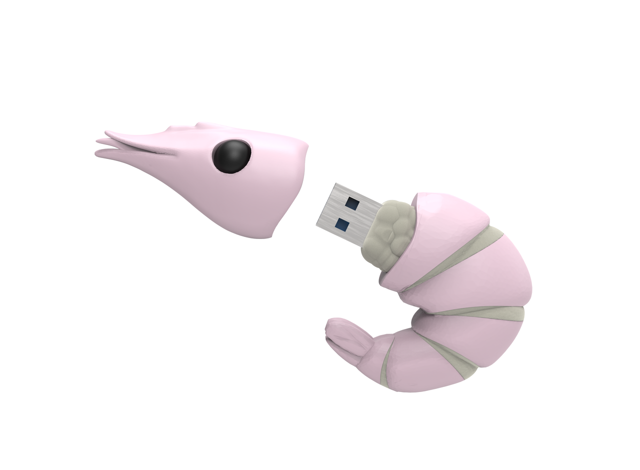 Pendrive tematizado como una gamba blanca de Huelva.